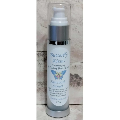 This Beautiful 1.7oz bottle of Butterfly Kisses Moisturizing Lotion is reminiscant of an escape to the beautiful mountains just before the first snow starts flying. Indulge your senses in Leaves, Charred Oak, Cedar, Sandalwood, White Musk and a hint of Clove & Nutmeg. (Aloe, Cocoa Butter, Shea Butter & Vitamin E Base, handmade locally in small batches.