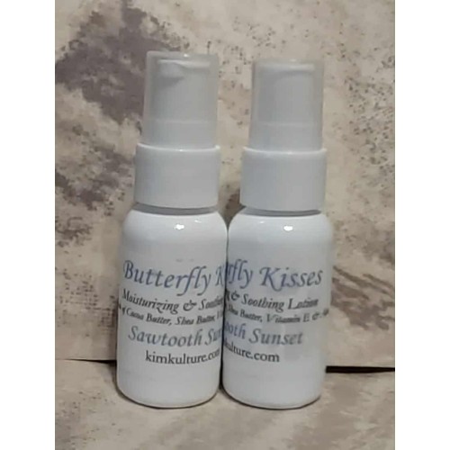 This 1oz bottle of Butterfly Kisses Moisturizing Lotion is reminiscant of an escape to the beautiful mountains just before the first snow starts flying. Indulge your senses in Leaves, Charred Oak, Cedar, Sandalwood, White Musk and a hint of Clove & Nutmeg. (Aloe, Cocoa Butter, Shea Butter & Vitamin E Base, handmade locally in small batches.