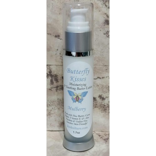 This Beautiful 1.7oz bottle of Butterfly Kisses Moisturizing Lotion is the perfect holiday scent: Sparkling Mulberry! (Aloe, Cocoa Butter, Shea Butter & Vitamin E Base, handmade locally in small batches.)