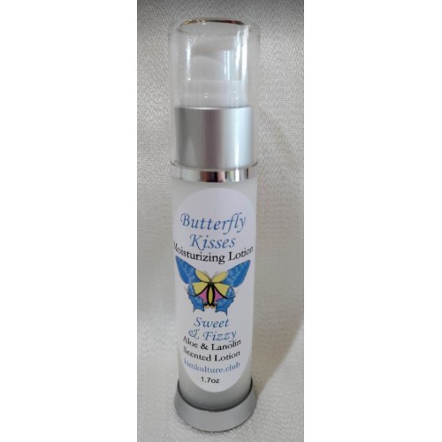 This beautiful 1.7oz bottle of Butterfly Kisses Moisturizing Lotion is a light, refreshing scent of Peaches, Strawberries and a splash of Champagne. (Handmade locally in small batches. A mix of Shea Butter, Cocoa Butter, Vitamin E, Aloe & Fragrance Oils. Sulfate & Paraben Free - perfect for sensitive skin!)