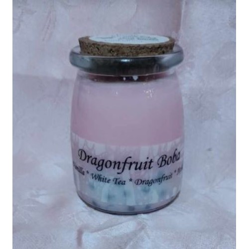 These super fun, hand poured, soy Boba Candles are not only cute but they smell amazing too! This candle is scented throughout with Pink Dragonfruit and hints of Musk, Amber, Island Lilies, Melon & Peach. When the hand poured wax Boba "Beads" start melting, they emit a pop of White Tea Scent.