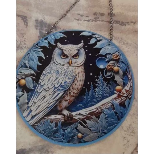 This beautiful 6"x6" acrylic suncatcher features and absolutely stunning White Snow Owl in a beautiful dark, night sky
