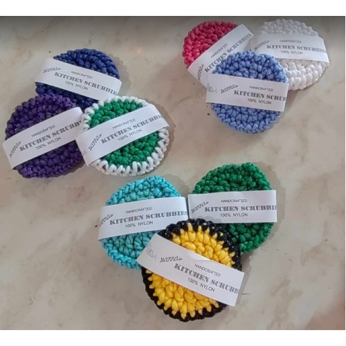 These Kitchen Scrubbies are incredible. They're hand crocheted, approx 4-1/4"x4-1/4" and are available in a variety of solid or mixed colors. Once you've used one of these, you'll never want to use the other ones again.