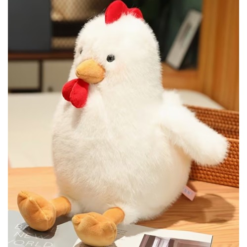 Approx 12"x12" this stuffed White Plush Chicken is squeezable, huggable and isn't as noisy as a real one!